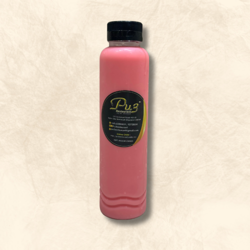 Full jug of Bandung rose milk. Sweet, creamy, and beautifully pink—a Malaysian favorite perfect for family sharing. Price: SGD $12.00 per jug