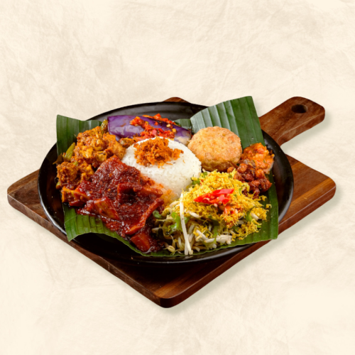 Ambeng Solo – 1 PAX is a satisfying single-serve Nasi Ambeng set featuring fragrant rice paired with your choice of protein — Beef, Chicken, Sotong, or Fish (+$1) — along with classic traditional sides for a complete, hearty meal. Perfectly portioned...